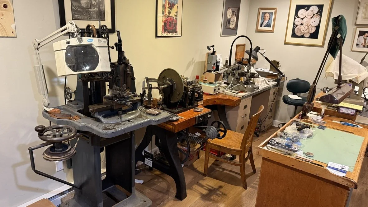 We returned inside the house and descended again, this time into a windowless basement room filled with even more fascinating equipment for high-end artisanal watchmaking, prototyping, and restoration.